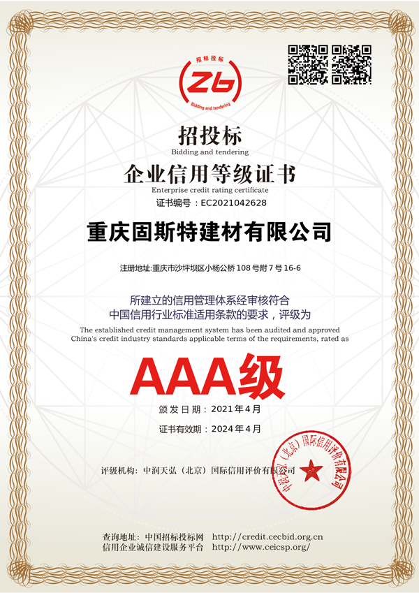 重慶固斯特:AAA級(jí)信用企業(yè)