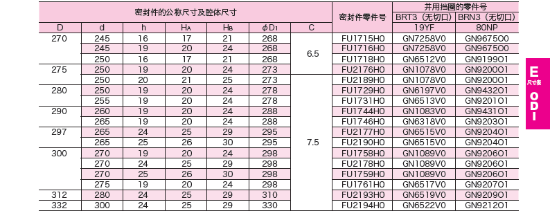 活塞密封專用密封件選型
